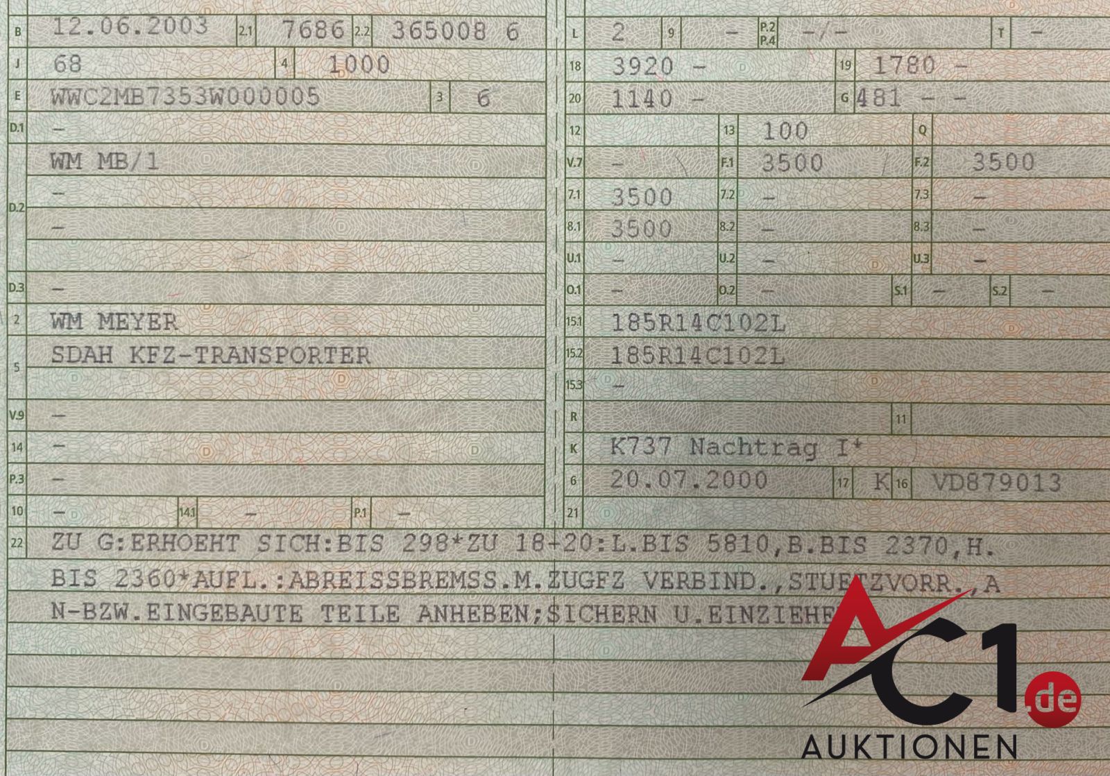 Artikel: 5399 - Baumaschinentransportanhänger wm Meyer MB/ 1