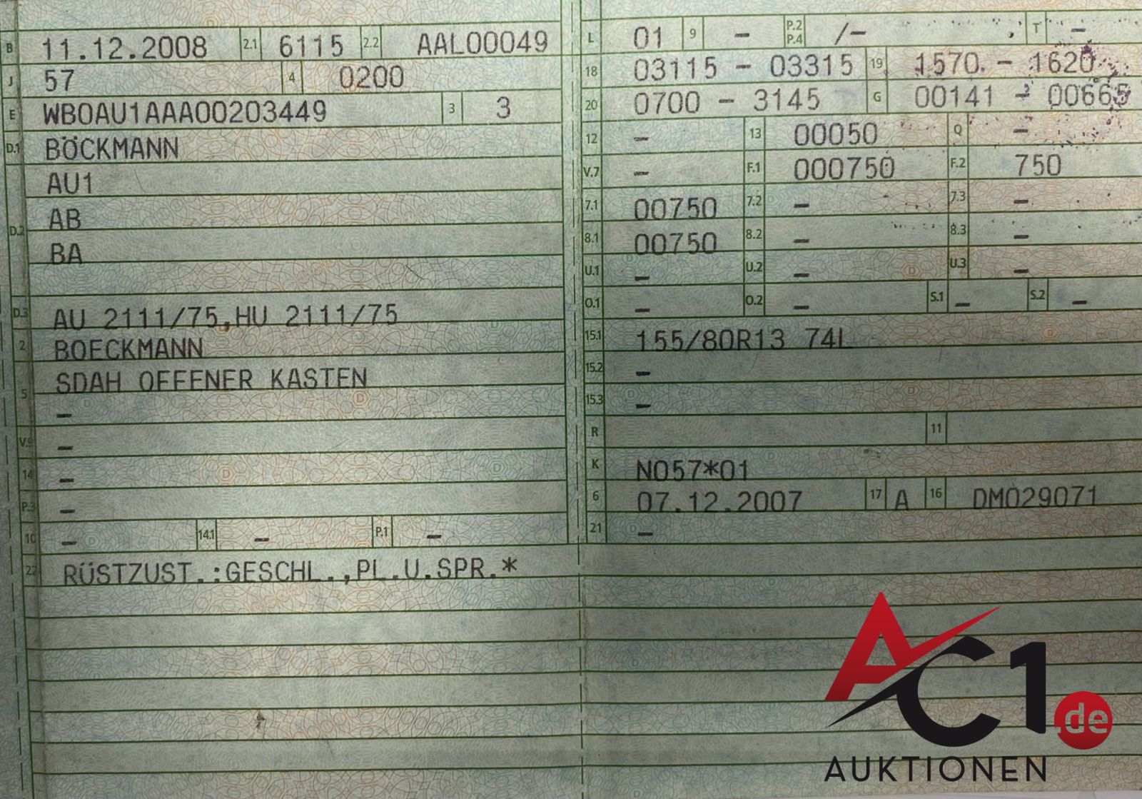 Das Auktionshaus Chemnitz weist ausdrücklich darauf hin, dass sämtliche zum Verkauf stehende Artikel ungeprüft sind. Bei allen zum Verkauf stehenden Fahrzeugen und Maschinen ist davon auszugehen, dass diese bereits einen nicht unerheblichen Vorschaden erlitten haben.