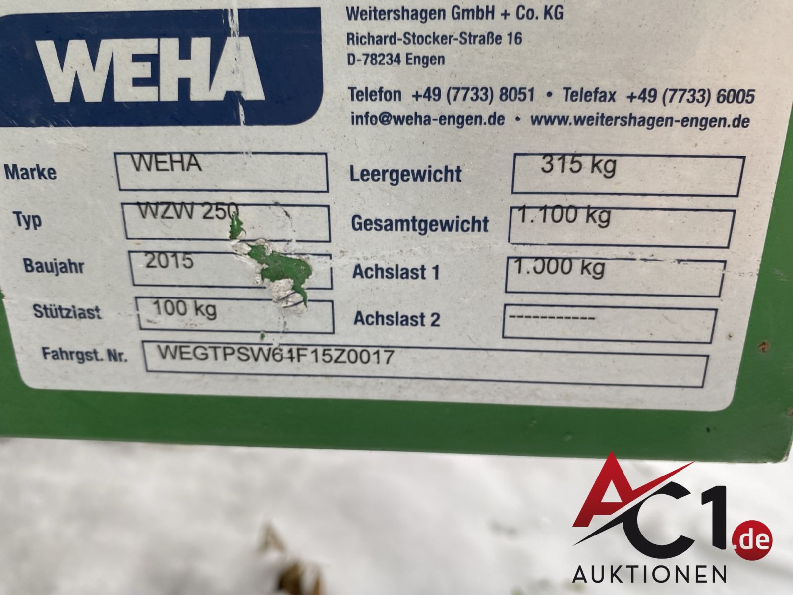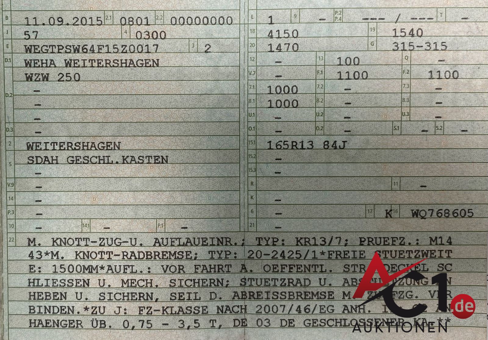Artikel: 5206 - Einachsanhänger WEITERSHAGEN Typ WZW 250 geschl. Kasten
