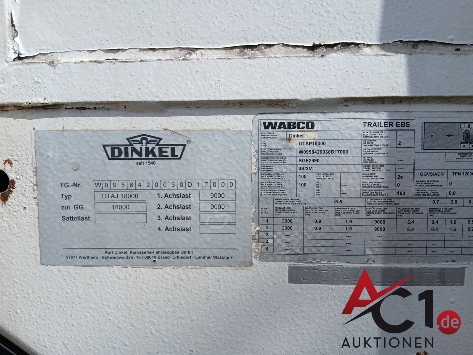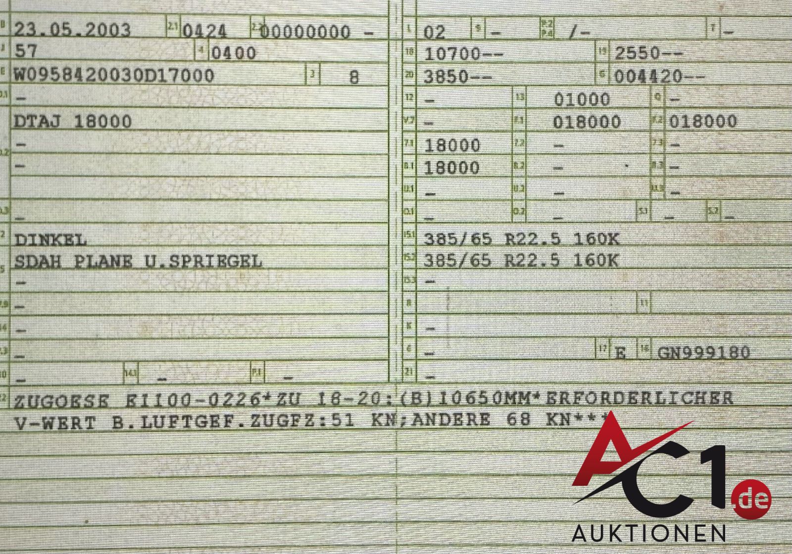 Artikel: 5663 - LKW-Tandemanhänger Plane/Spriegel Dinkel DTAJ 18000