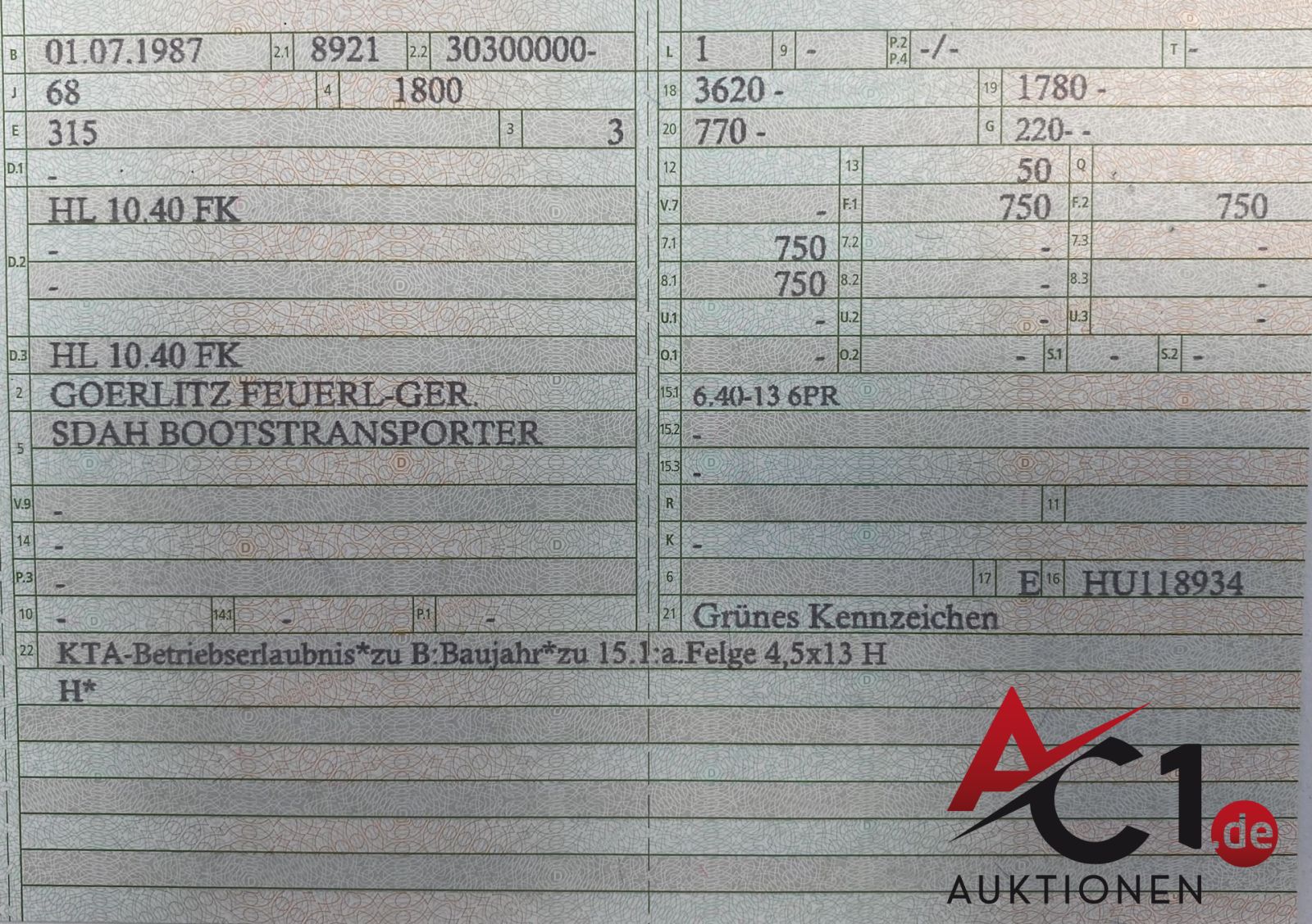 Artikel: 6234 - PKW-Anhänger/Bootstrailer HL 10.40 FK