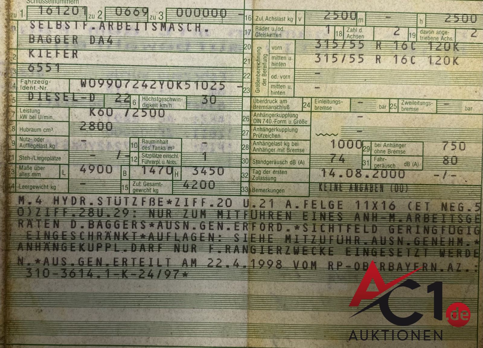 Das Auktionshaus Chemnitz weist ausdrücklich darauf hin, dass sämtliche zum Verkauf stehende Artikel ungeprüft sind. Bei allen zum Verkauf stehenden Fahrzeugen und Maschinen ist davon auszugehen, dass diese bereits einen nicht unerheblichen Vorschaden erlitten haben.