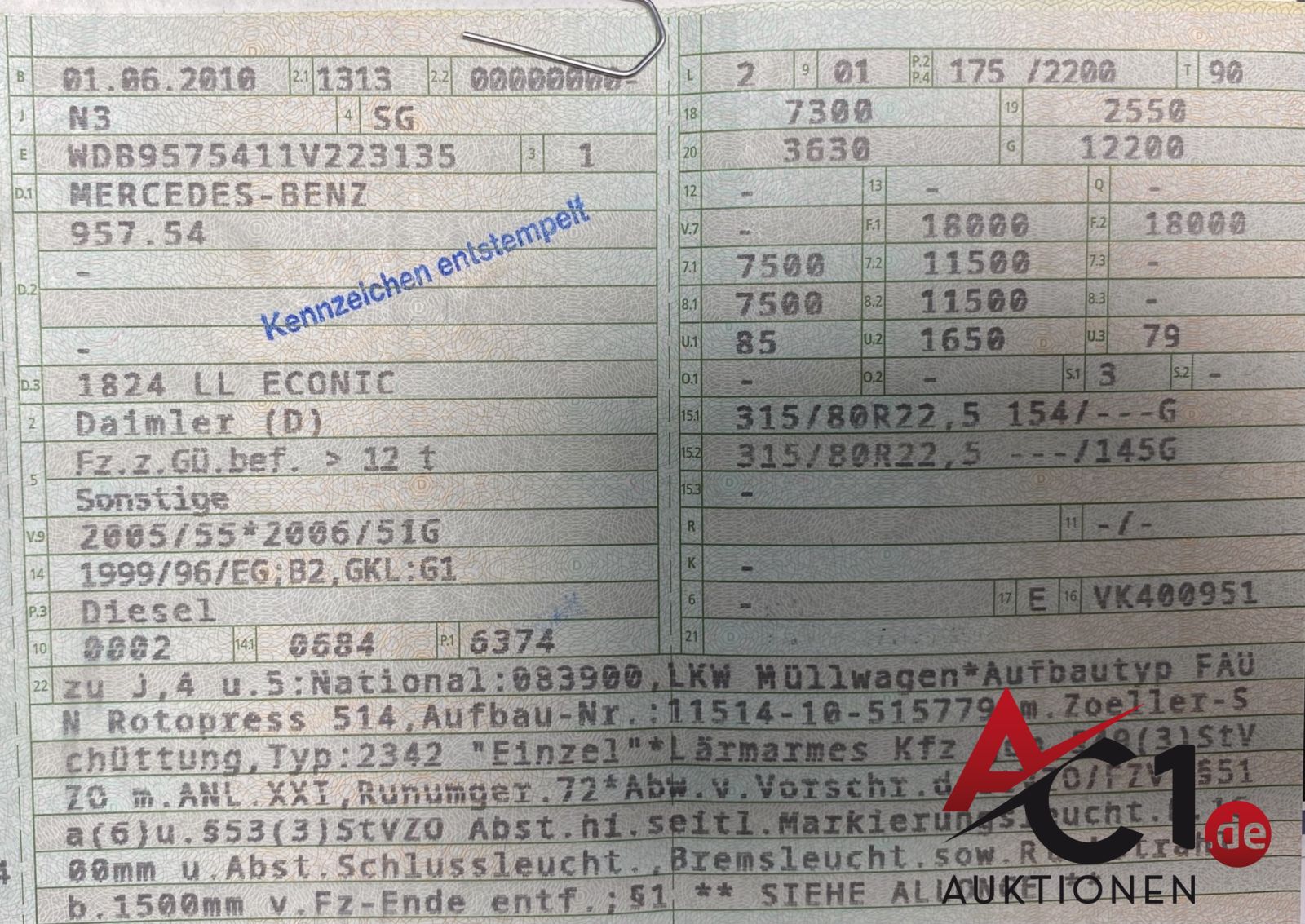 Lot: 4440 - MB Econic 1824 Müllwagen 4x2 FAUN Rotopress 514