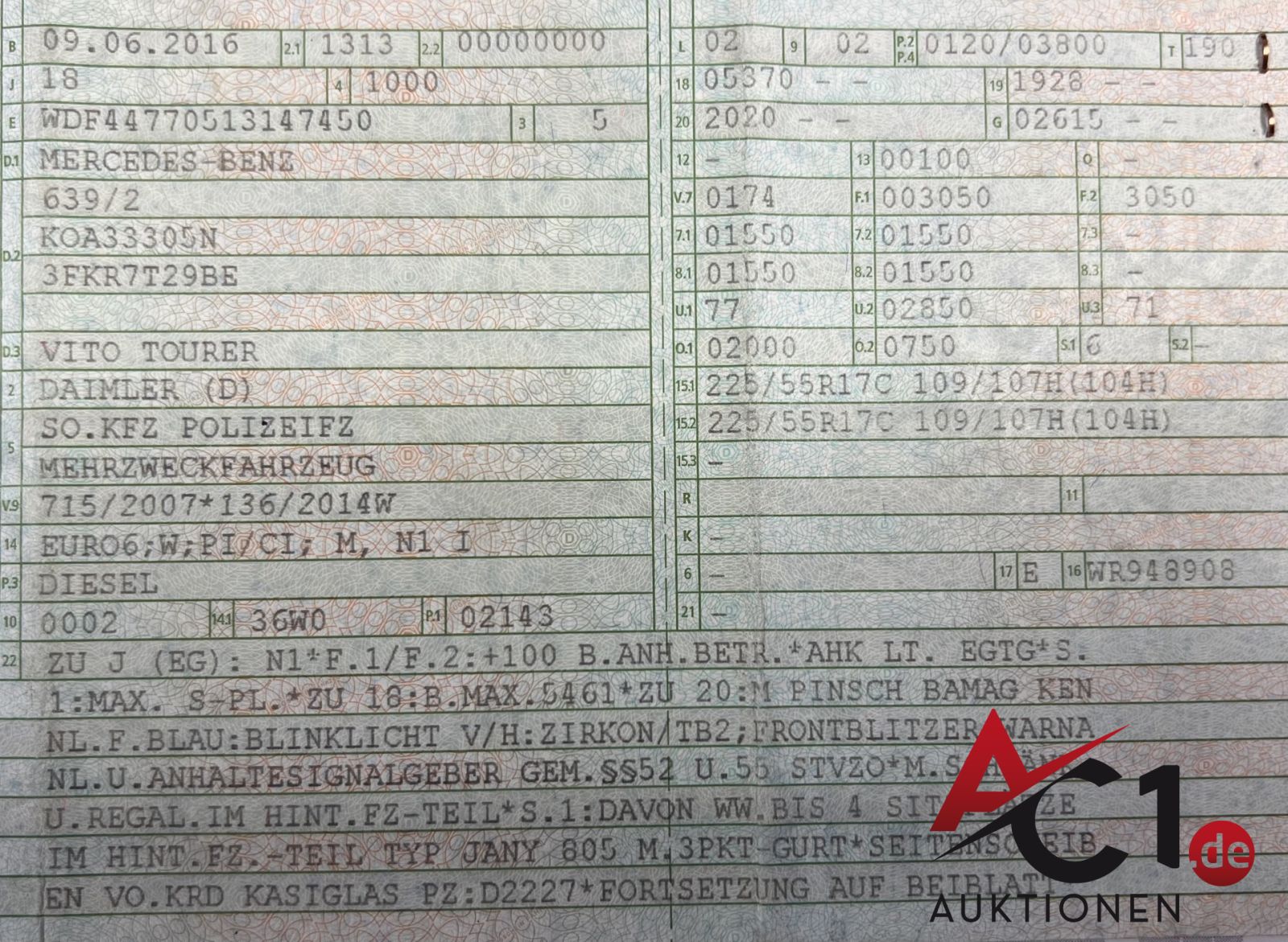 Lot: 3096 - MB Vito 116 CDI 4x4 So.KFZ Polizei extra lang