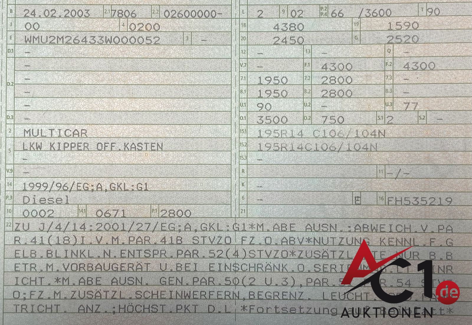 Lot: 5718 - Multicar M26 Allradkipper