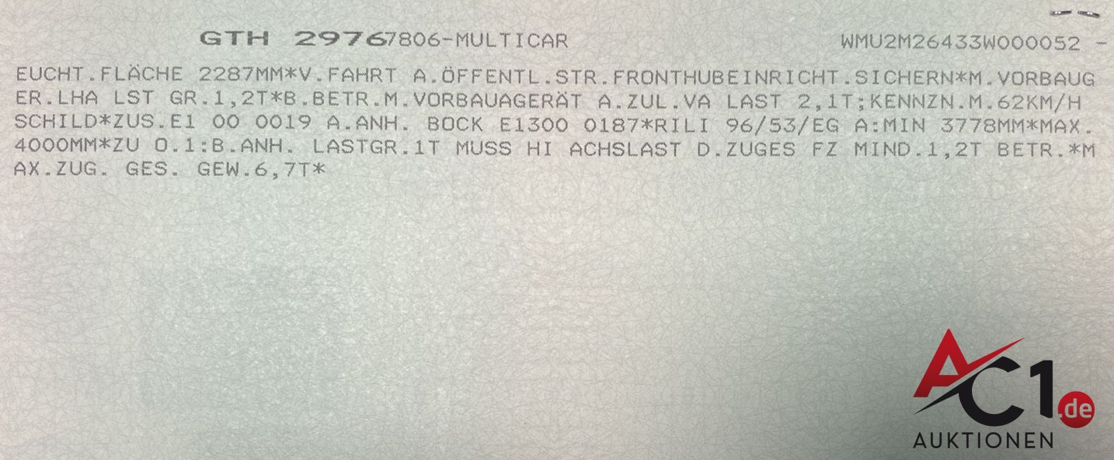 Das Auktionshaus Chemnitz weist ausdrücklich darauf hin, dass sämtliche zum Verkauf stehende Artikel ungeprüft sind. Bei allen zum Verkauf stehenden Fahrzeugen und Maschinen ist davon auszugehen, dass diese bereits einen nicht unerheblichen Vorschaden erlitten haben.