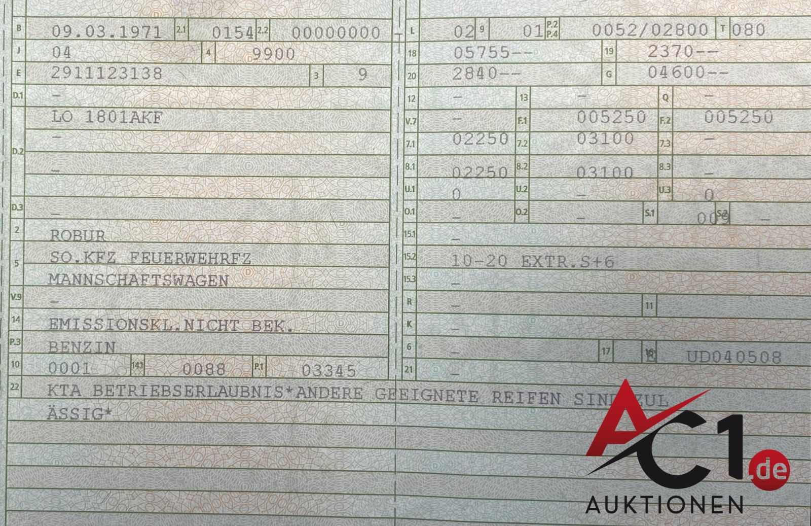 Lot: 4515 - Robur LO 1801 AKF So.KFZ Feuerwehr Mannschaftswagen