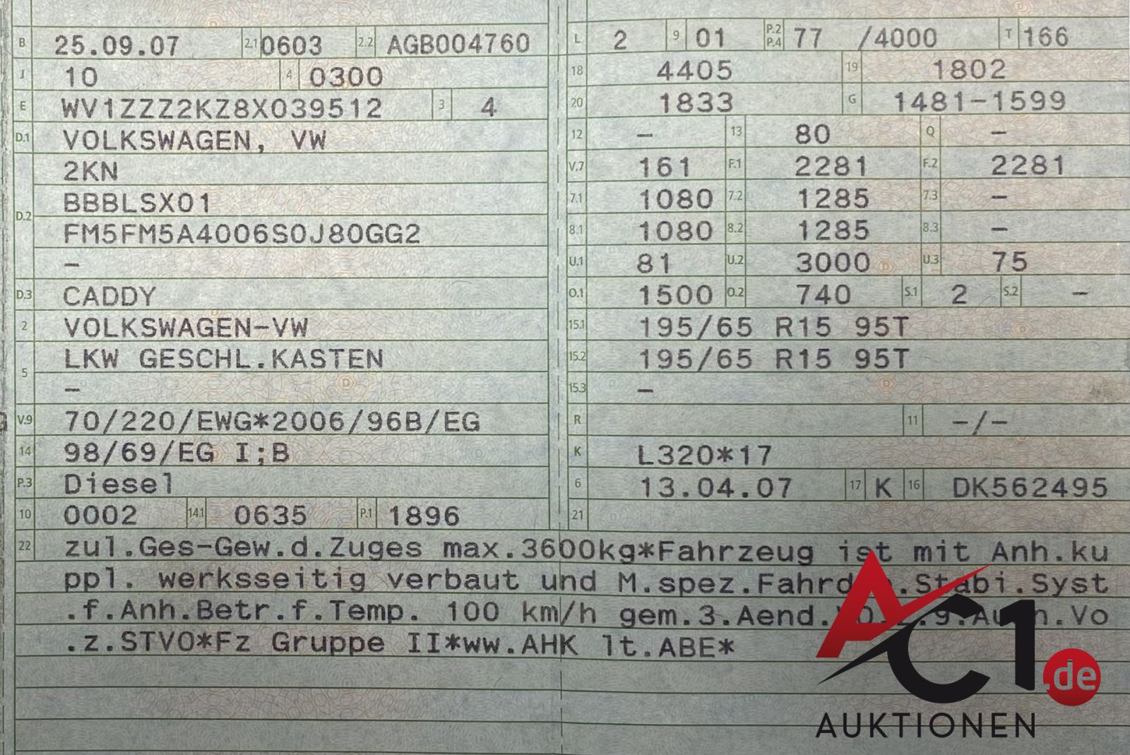 Das Auktionshaus Chemnitz weist ausdrücklich darauf hin, dass sämtliche zum Verkauf stehende Artikel ungeprüft sind. Bei allen zum Verkauf stehenden Fahrzeugen und Maschinen ist davon auszugehen, dass diese bereits einen nicht unerheblichen Vorschaden erlitten haben.