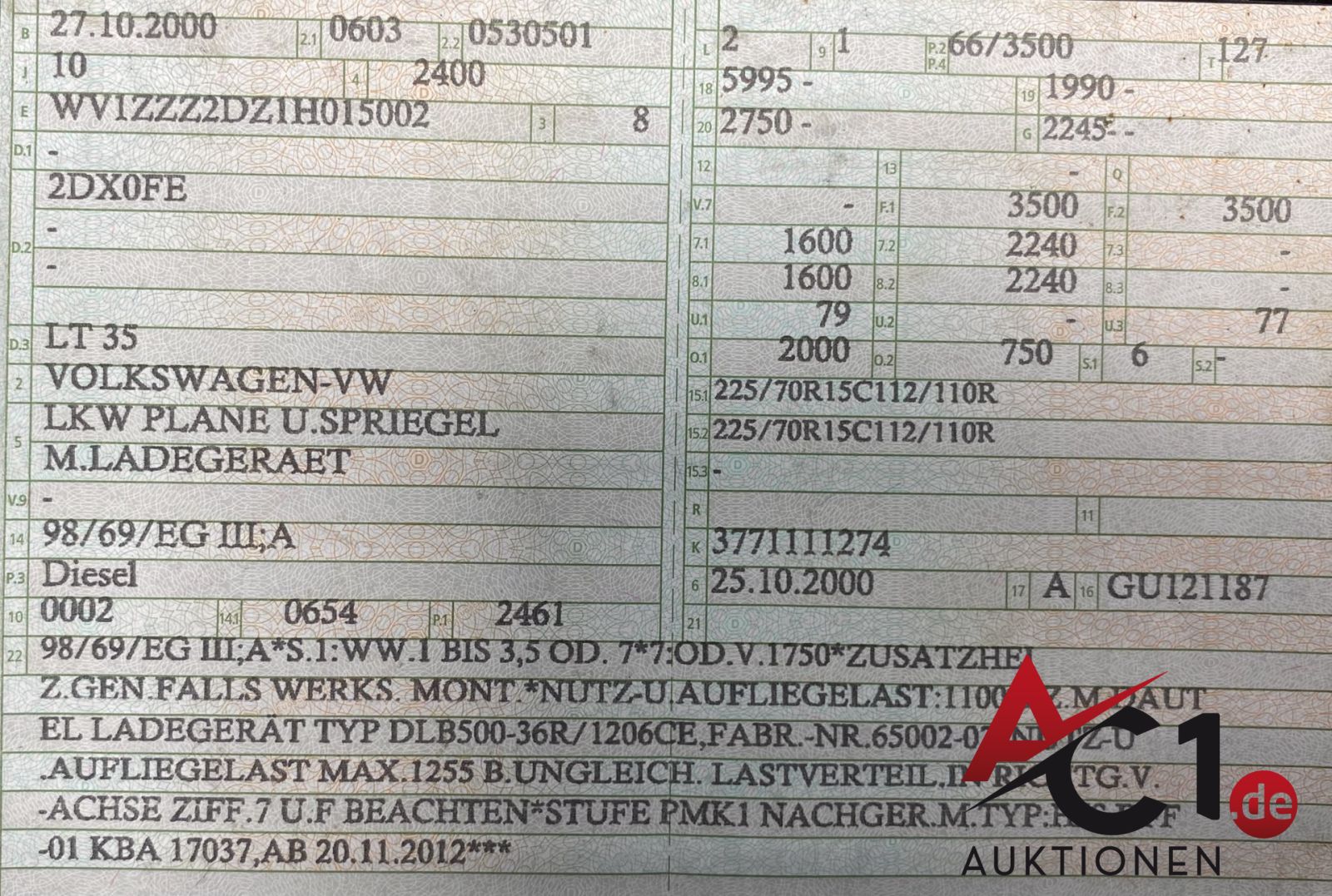 Lot: 5599 - VW LT 35 2.5 TDI Plane/ Spriegel mit Ladebordwand DAUTEL