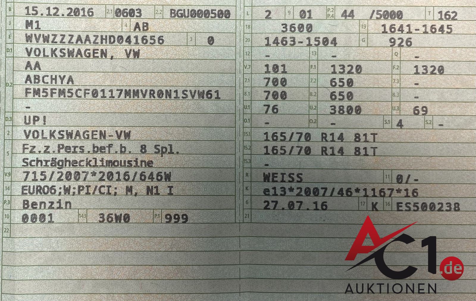 Lot: 5180 - VW up! 1.0 MPI