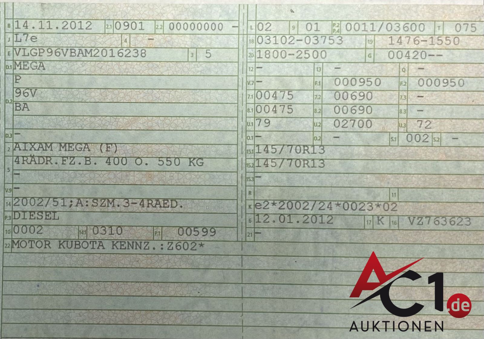 Das Auktionshaus Chemnitz weist ausdrücklich darauf hin, dass sämtliche zum Verkauf stehende Artikel ungeprüft sind. Bei allen zum Verkauf stehenden Fahrzeugen und Maschinen ist davon auszugehen, dass diese bereits einen nicht unerheblichen Vorschaden erlitten haben.