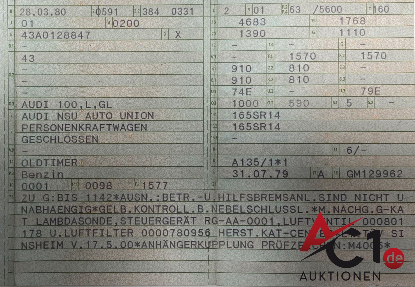 Artikel: 5549 - Audi 100 Oldtimer (H-Zulassung)