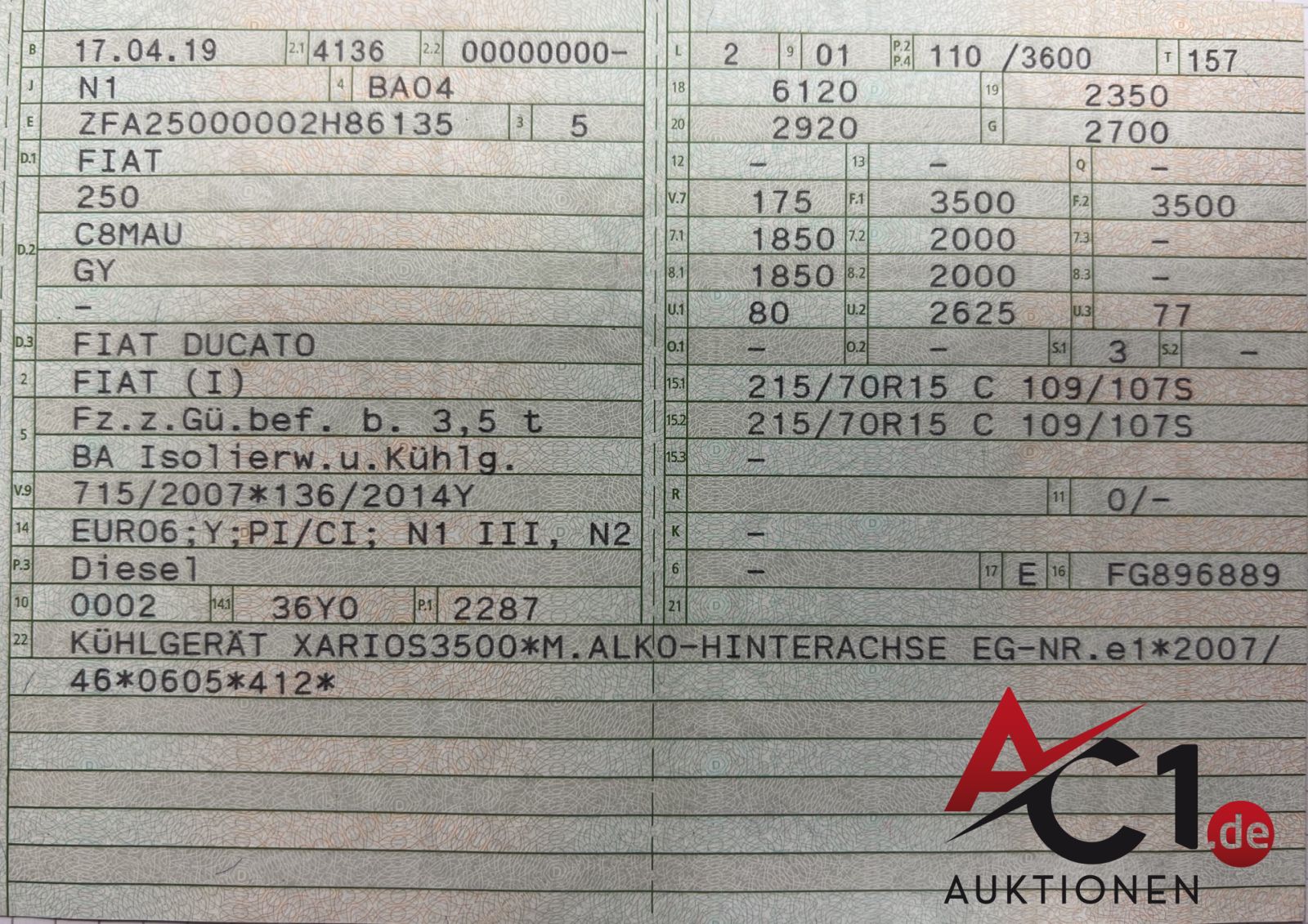 Artikel: 4905 - Fiat Ducato 2.3 150 Kühlkoffer 3 Sitze Aufbau Kiesling