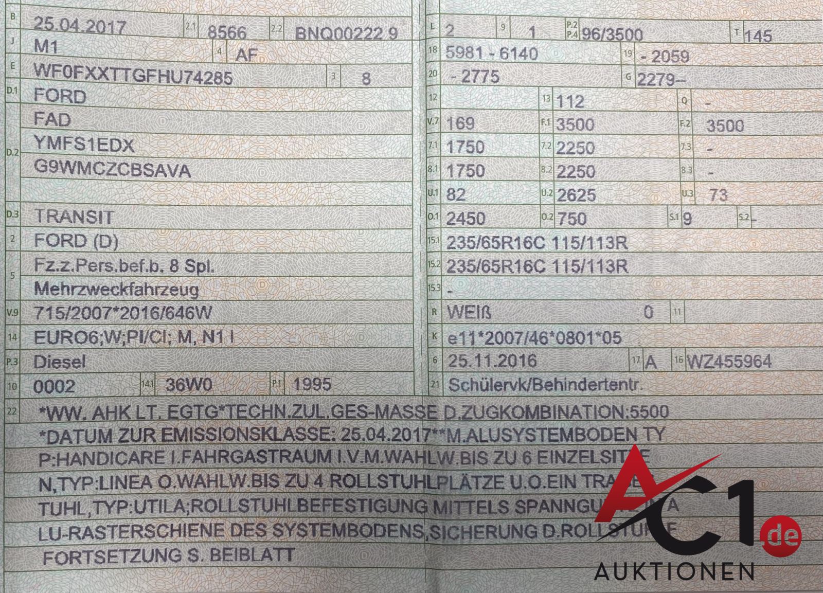 Artikel: 5688 - Ford Transit 2.0 TDCi 9 Sitze inklusive Tragestuhl
