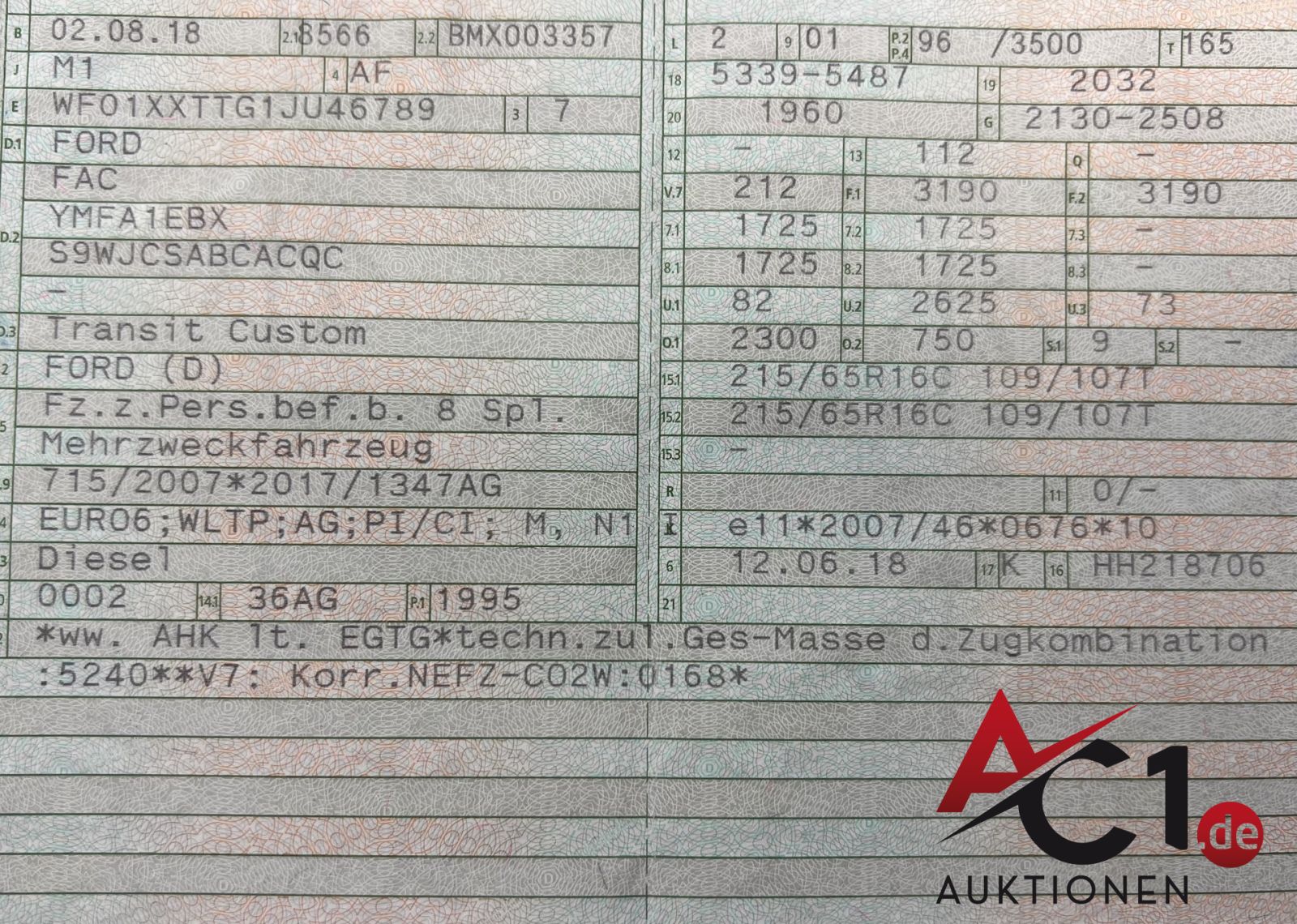 Artikel: 4834 - Ford Transit Custom 2.0 TDCi Bus