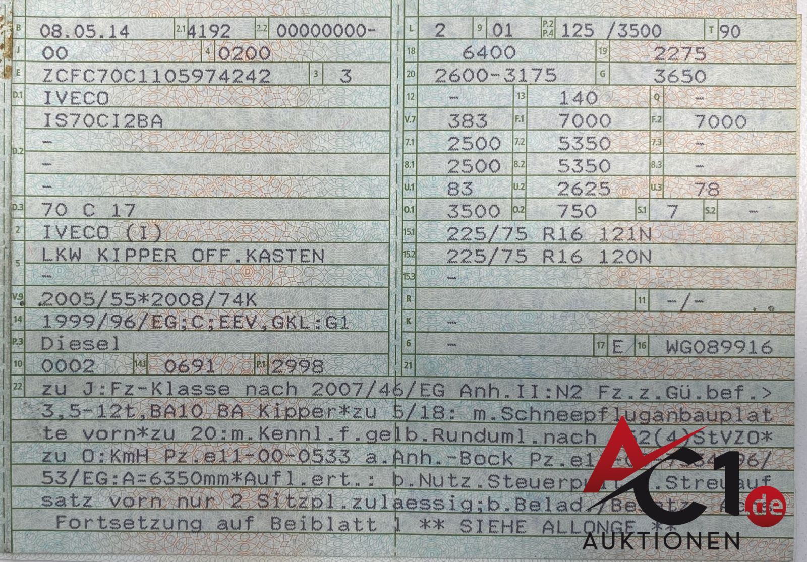 Das Auktionshaus Chemnitz weist ausdrücklich darauf hin, dass sämtliche zum Verkauf stehende Artikel ungeprüft sind. Bei allen zum Verkauf stehenden Fahrzeugen und Maschinen ist davon auszugehen, dass diese bereits einen nicht unerheblichen Vorschaden erlitten haben.