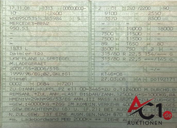 Artikel: 4855 - MB Axor 1833 L Plane/Spriegel mit Ladebordwand