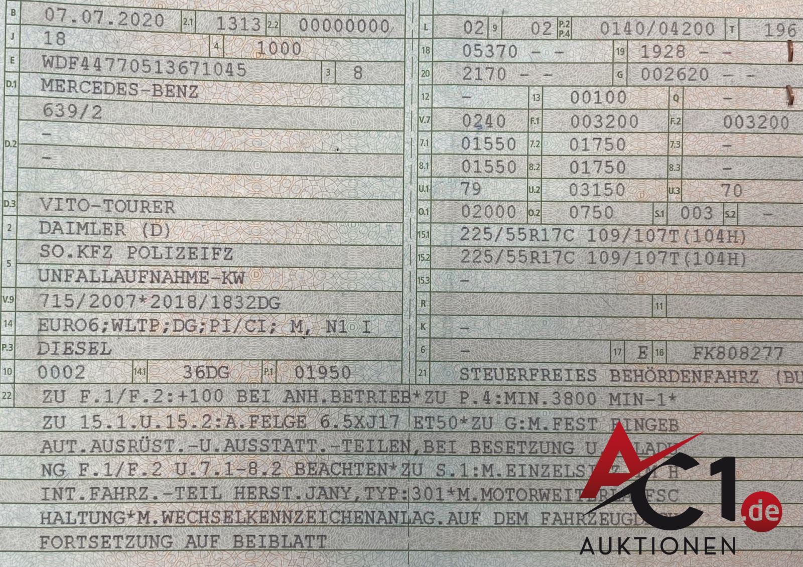 Artikel: 5359 - MB Vito Tourer 119 CDI 4x4 So.KFZ Polizei