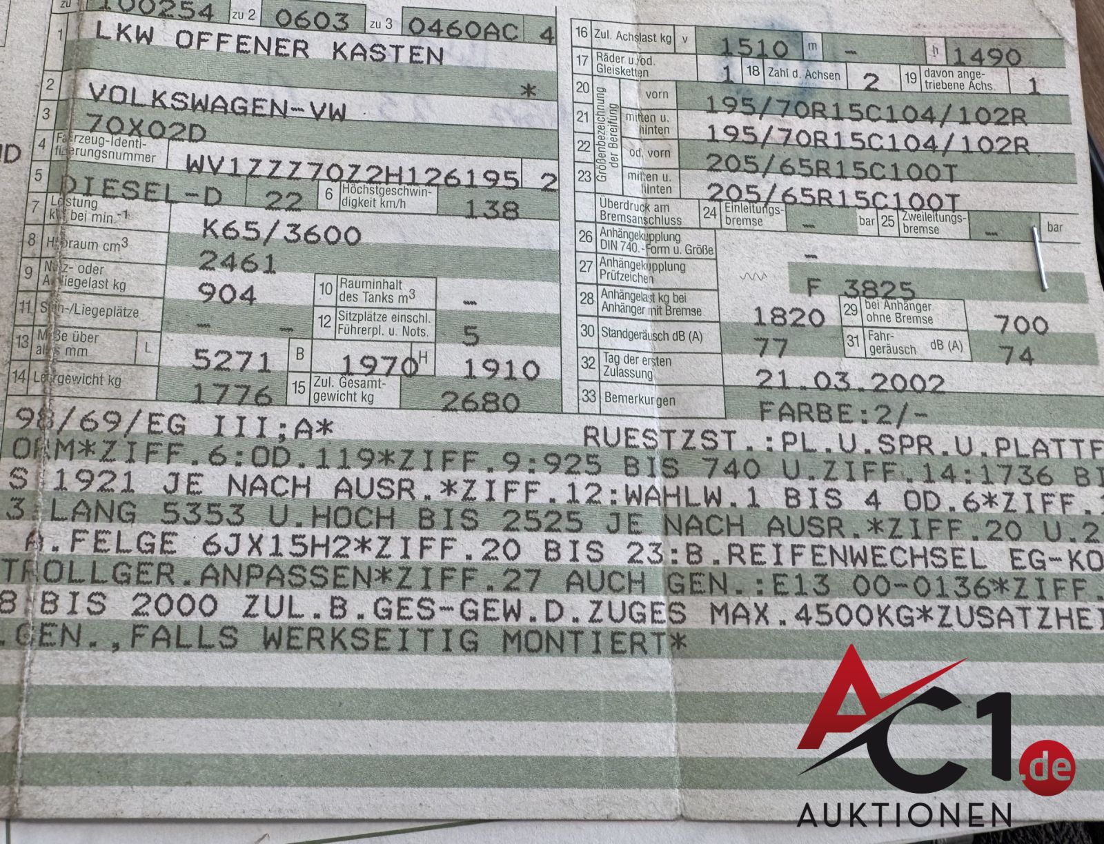 Das Auktionshaus Chemnitz weist ausdrücklich darauf hin, dass sämtliche zum Verkauf stehende Artikel ungeprüft sind. Bei allen zum Verkauf stehenden Fahrzeugen und Maschinen ist davon auszugehen, dass diese bereits einen nicht unerheblichen Vorschaden erlitten haben.