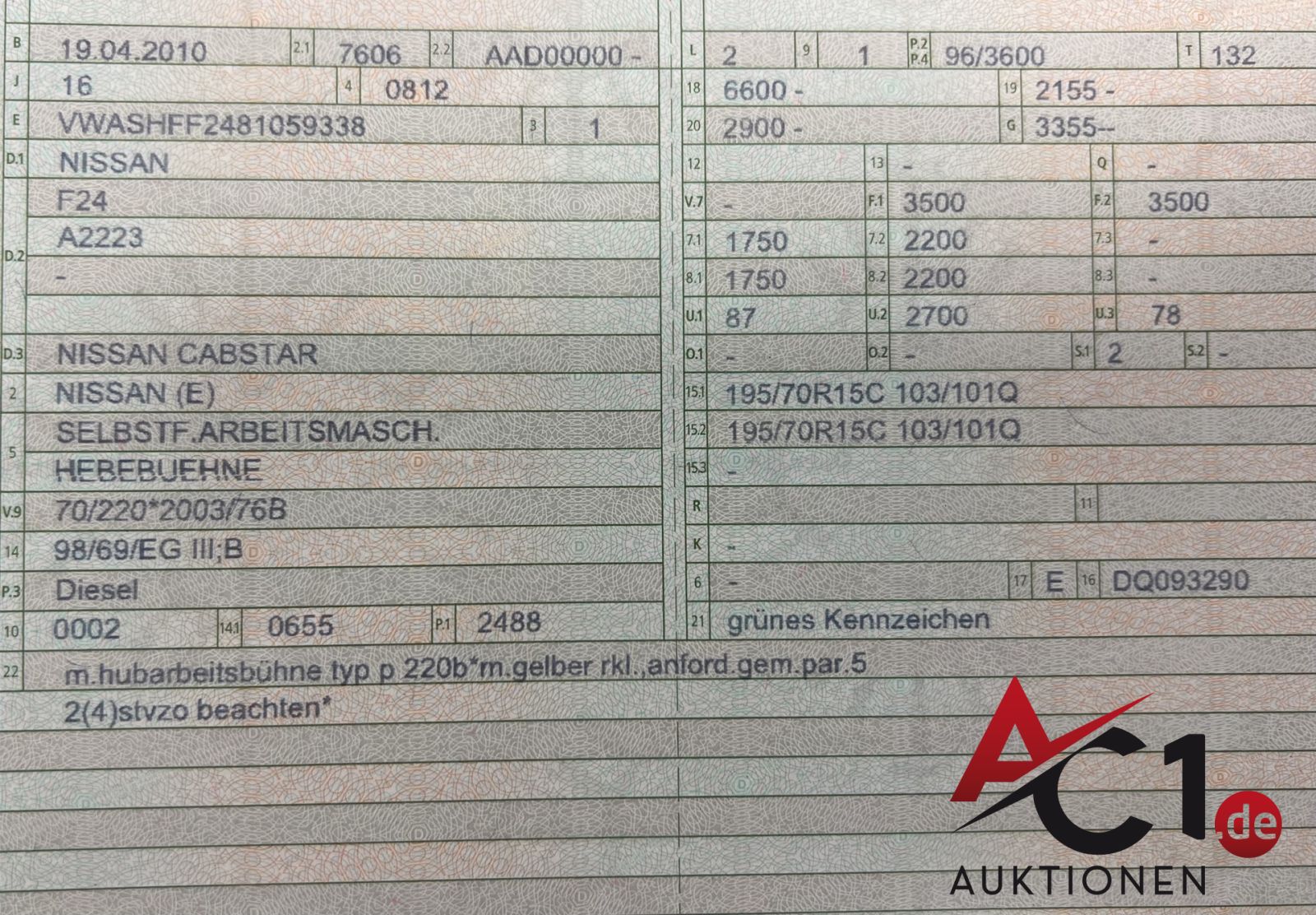 Das Auktionshaus Chemnitz weist ausdrücklich darauf hin, dass sämtliche zum Verkauf stehende Artikel ungeprüft sind. Bei allen zum Verkauf stehenden Fahrzeugen und Maschinen ist davon auszugehen, dass diese bereits einen nicht unerheblichen Vorschaden erlitten haben.
