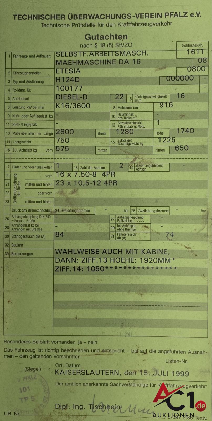 Das Auktionshaus Chemnitz weist ausdrücklich darauf hin, dass sämtliche zum Verkauf stehende Artikel ungeprüft sind. Bei allen zum Verkauf stehenden Fahrzeugen und Maschinen ist davon auszugehen, dass diese bereits einen nicht unerheblichen Vorschaden erlitten haben.