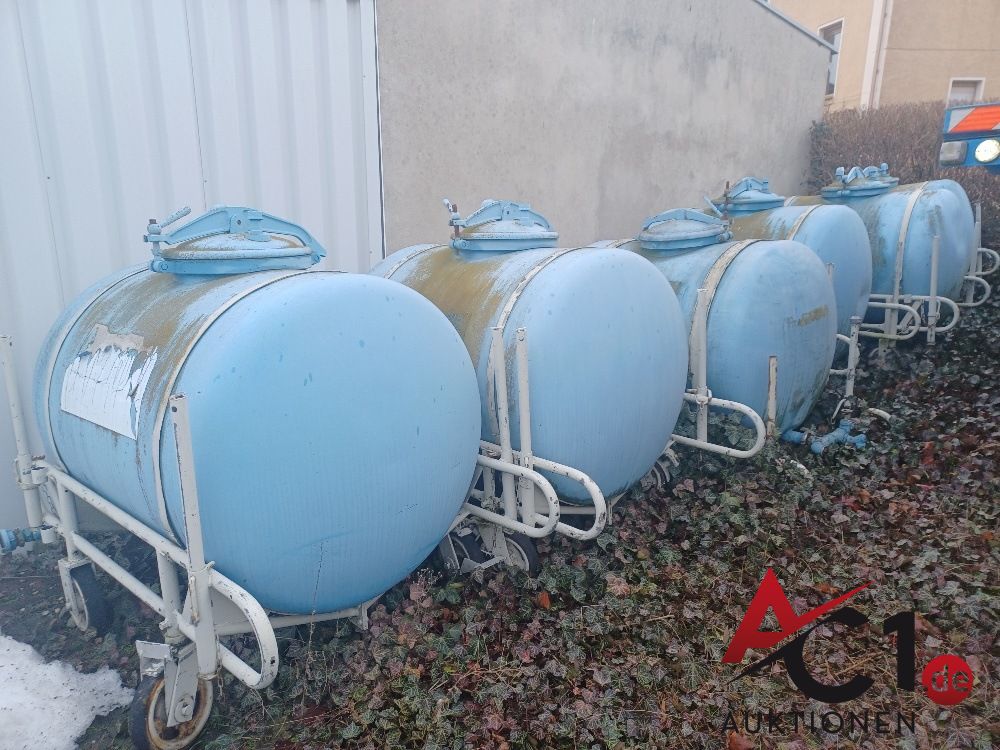 Artikel: 5817 - 6x Wasserfässer Aluminium ca. 1 m³ auf rollbarem Gestell