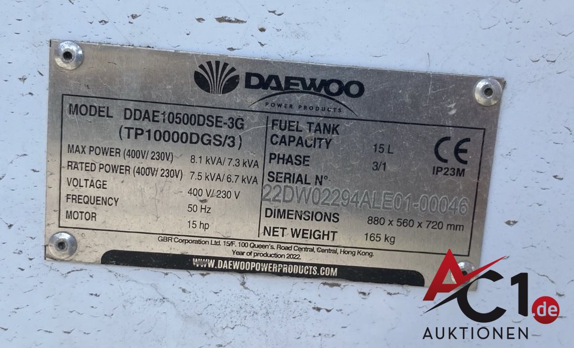 Artikel: 6202 - DAEWOO Notstromaggregat DDAE 10500DSE-3G